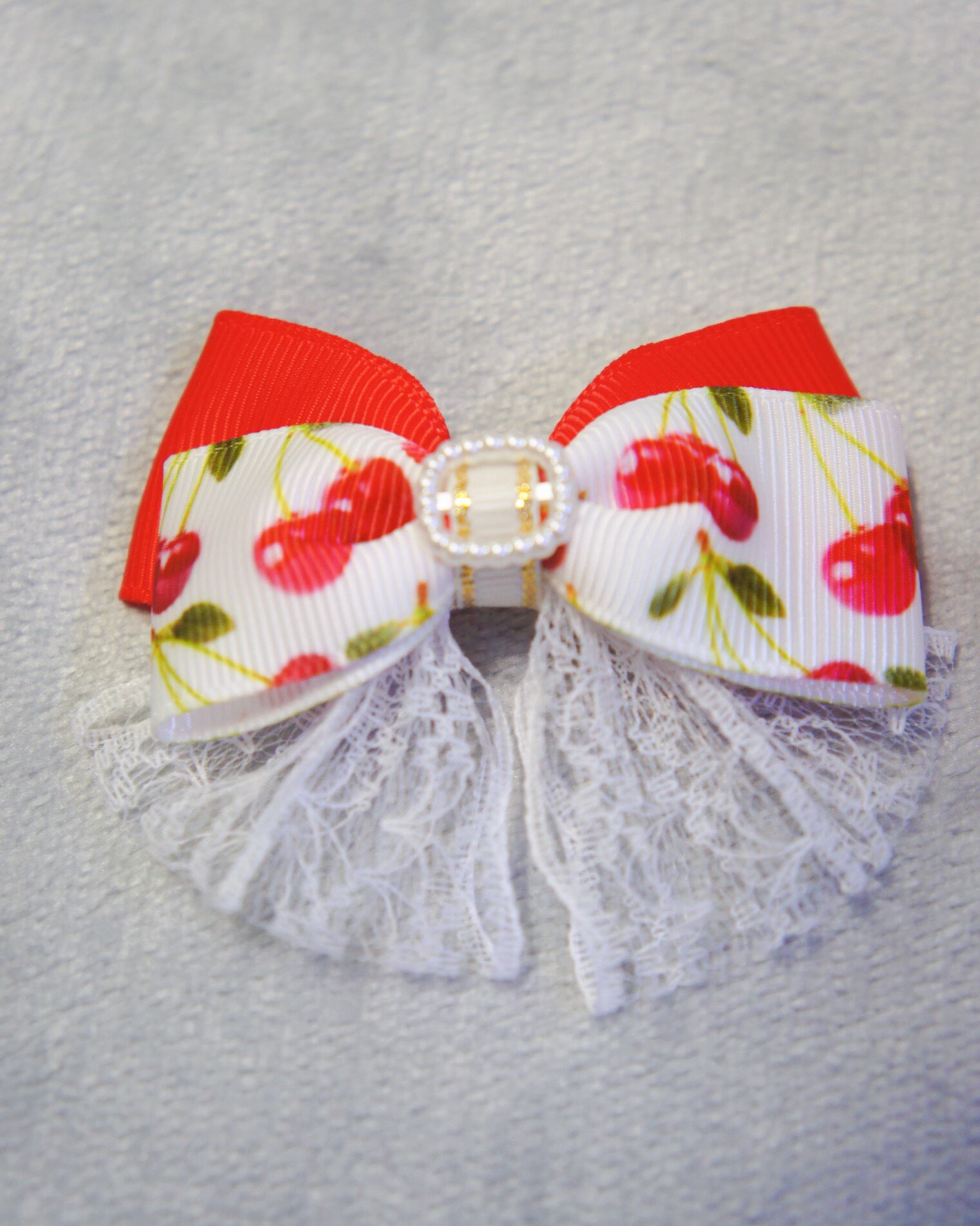 レース&さくらんぼ バレッタりぼん