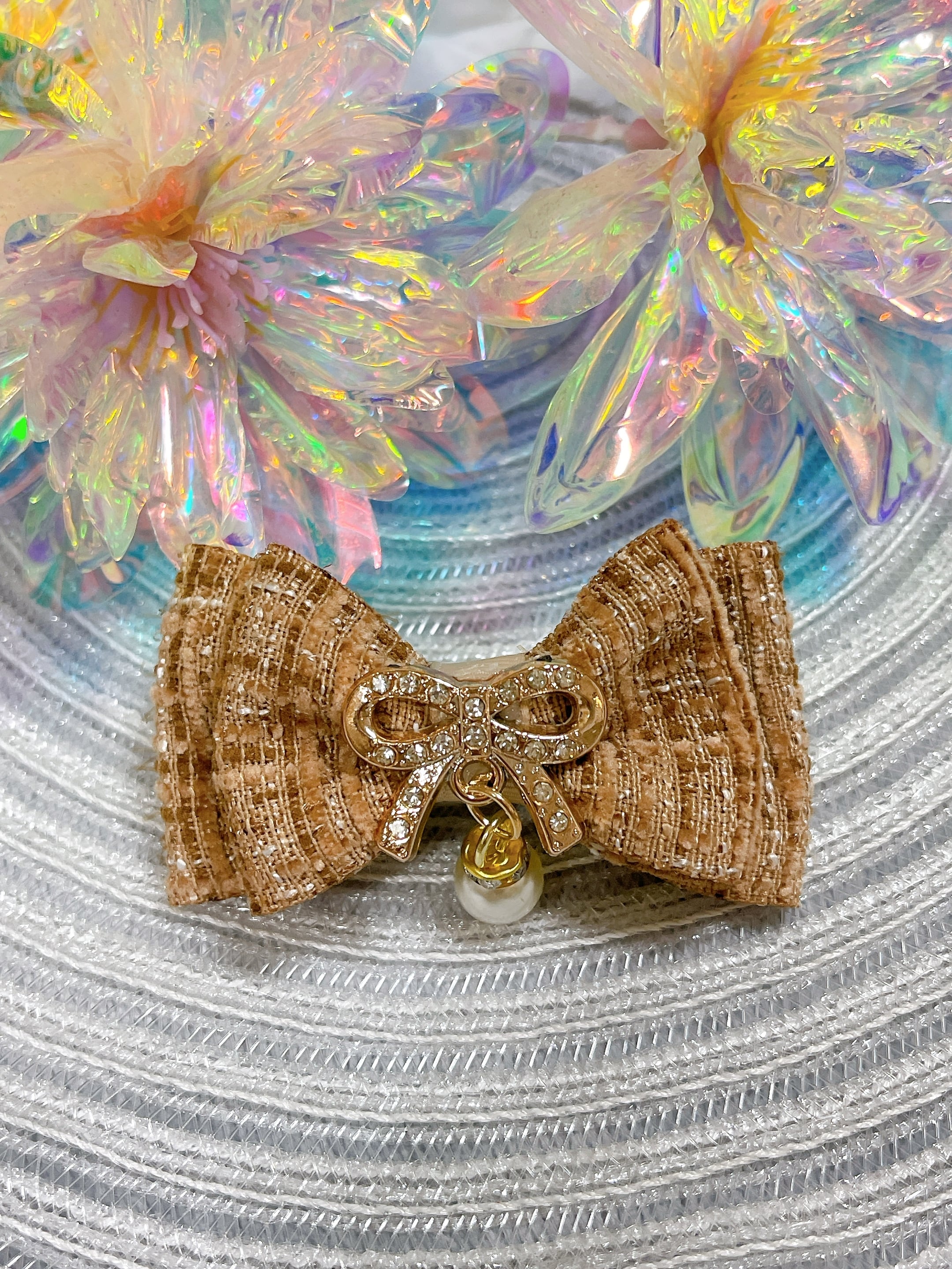 ツイード素材のリボンが付いたおリボン