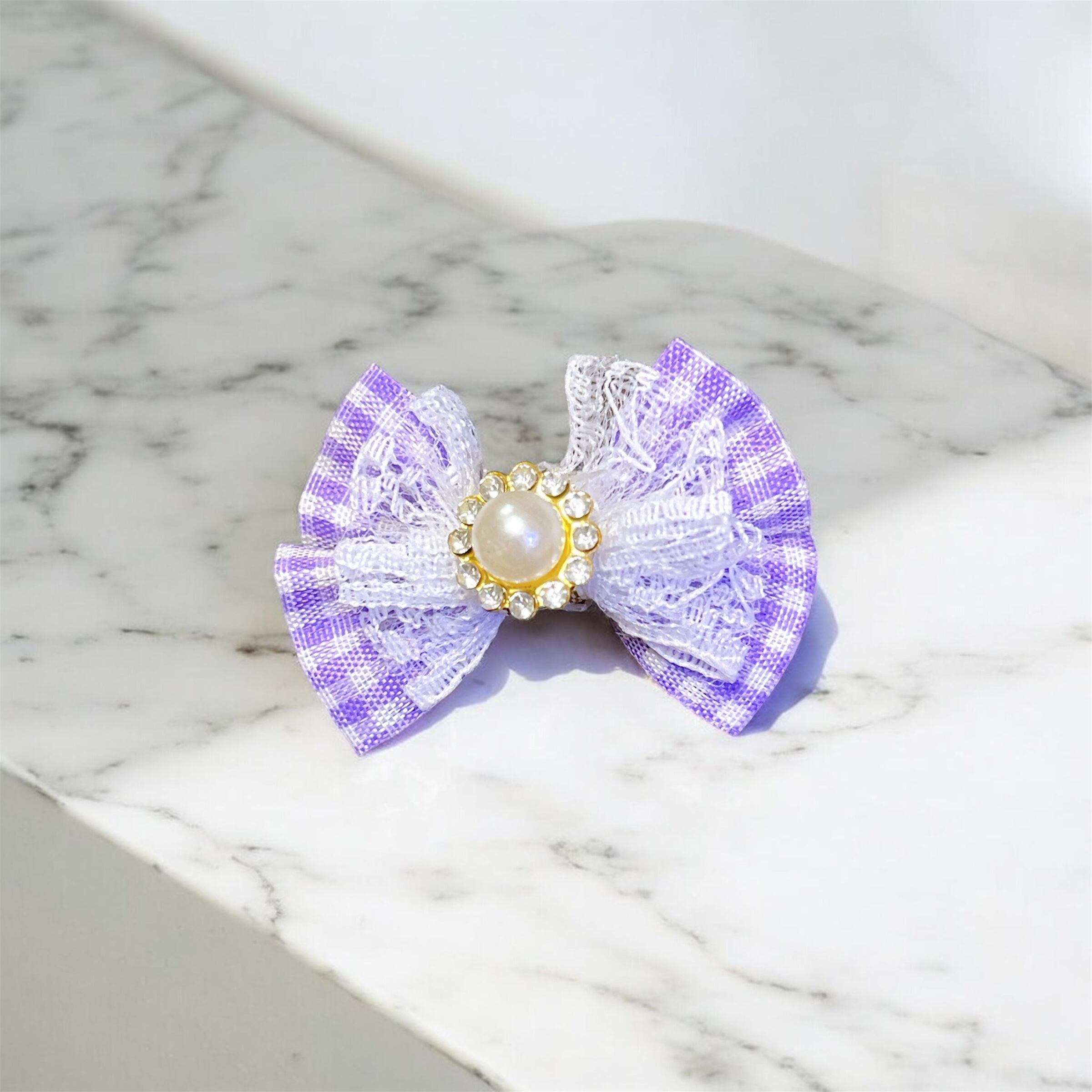 ミニリボン チェックパープル